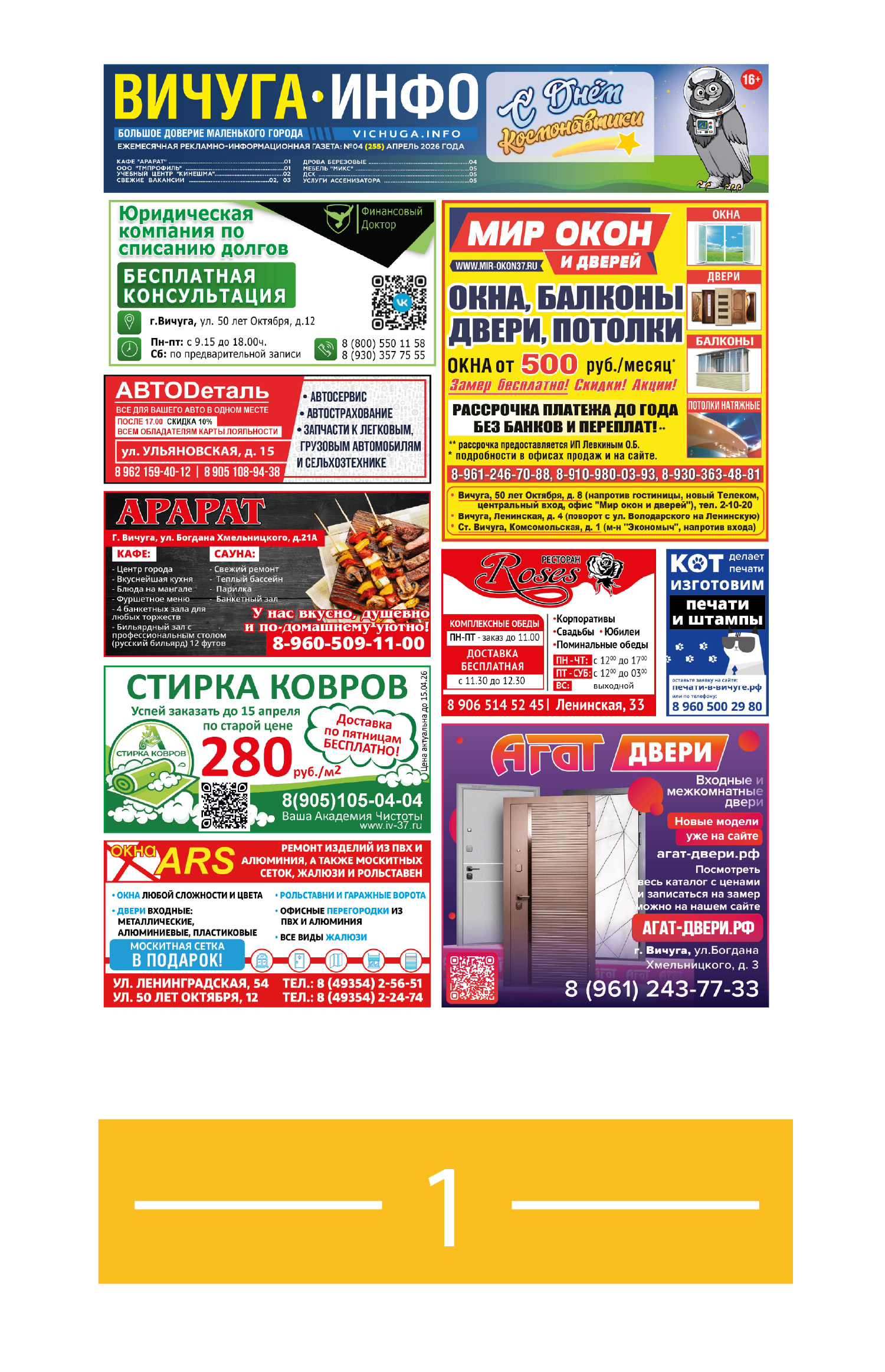 Здесь можно посмотреть газету онлайн, скачать ее, ознакомиться с условиями размещения информации. Также можно найти интересующий Вас товар или услугу, которые предлагают наши рекламодатели - компании Вичуги, Вичугского района, а также других городов России.